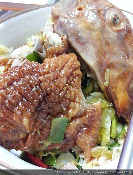 有半顆鴨頭應該也算是它的特色(阿石和華興沒有)鴨肉直接吃也蠻有味道,沾醬偏鹹不用加太多~