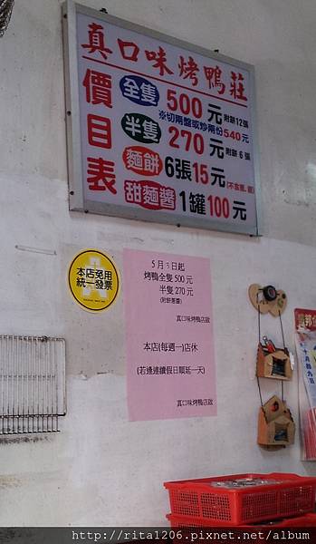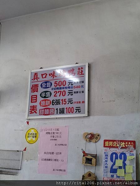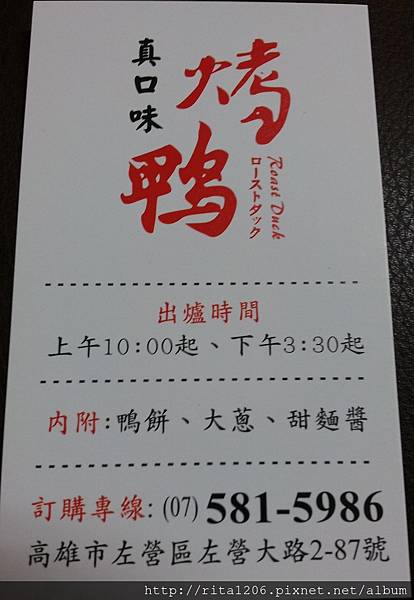 2013年五月初早上十點打電話預訂了半隻烤鴨(留姓氏、電話及要拿鴨的時間)