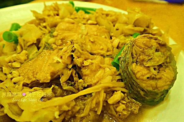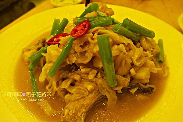 『高麗菜酸蒸魚』,撥開上面厚厚的高麗菜,下面的魚蒸地相當嫩,加上獨特的酸味,非常好吃!