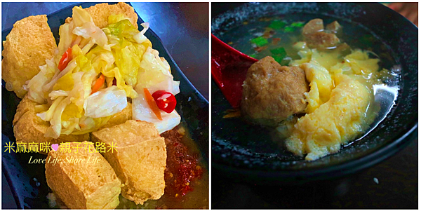 『貢丸蛋花湯』及『臭豆腐』,炸得酥脆的臭豆腐配上酸甜爽口的台式泡菜,還是不敗的組合啊!
