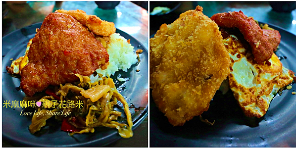 『燒肉併花枝排雙拼飯』,是不是看起來超美味又超營養!花枝排吃得到扎實的花枝,燒肉肉質也非常鮮嫩!